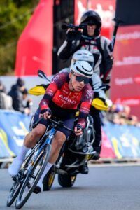 Wir haben den Rennverlauf etwas falsch vorhergesagt und sind davon ausgegangen, dass die große Selektion wie in den Vorjahren in der letzten der sechs großen Runden über die Bergwertung Aichberg erfolgen wird. Es hat sich aber bereits mit 85km to go eine 8-köpfige Gruppe gelöst in der wir leider nicht vertreten waren. Es folgten weitere „erfolglose“ Attacken in denen Fahrer von uns vertreten waren, jedoch der Abstand zur Fluchtgruppe nicht geschlossen werden konnte.